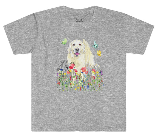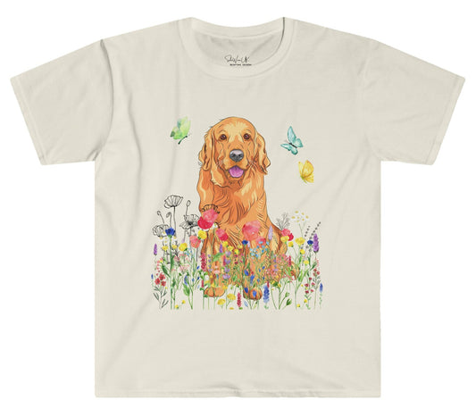 Cute 'Retriever dog in Wildflowers and Butterflies Top' - lovely gift for dog Lover, dog owner gift, dog dad, dog mama, dog mom