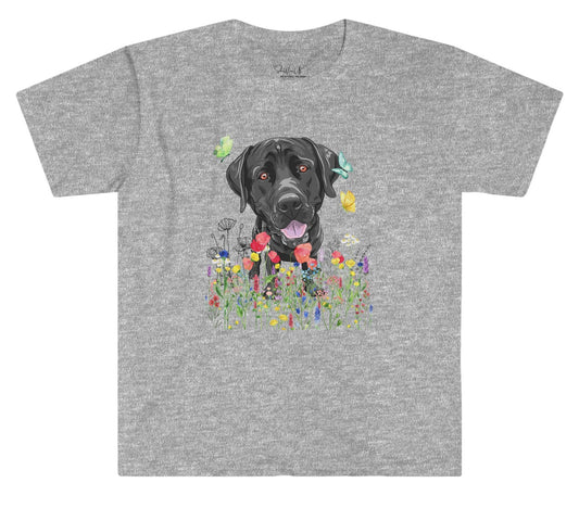 Black Labrador in Wildflower Meadow T-Shirt, Funny Labrador Shirt, Cute Labrador Gift, Labrador Dad shirt, Labrador Mom tee, dog walker gift