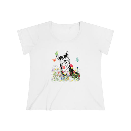 Cute Trendy Plus Size Women's Tee, Corgi Wildflowers Tee, Corgi Mom Shirt, T-shirt Curvy women , Corgi Dog Lover fashion for Curvy Ladies