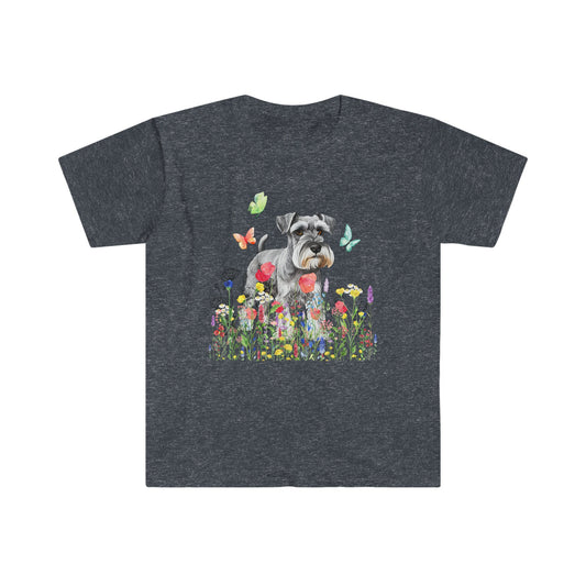 Cute Schnauzer in Wild flower T-shirt, Dog Dad shirt, Dog Sitter Pawnan gift, Dog Moms tee, Fur Mamas Tshirt, Dog Papas, Dog Walkers Shirt