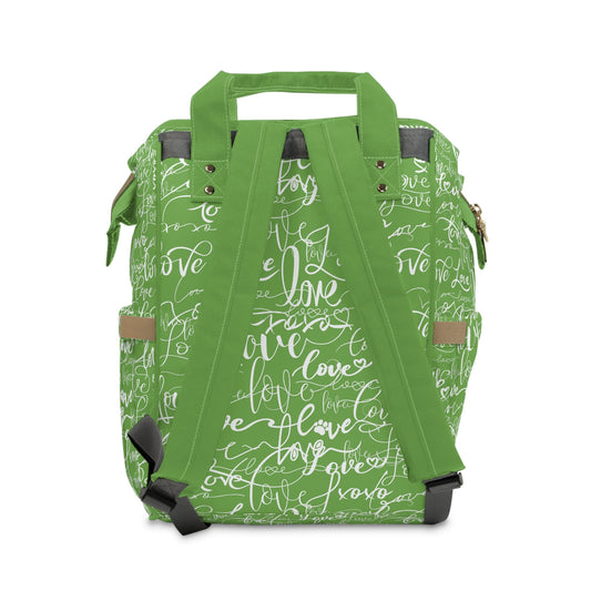 Cool Lime Greenish Backpack Diaper Bag/Love All Over Print/Unique Elegant Design/ Woman's Weekend Bag/Multifunctional Diaper Bag/ Love Print